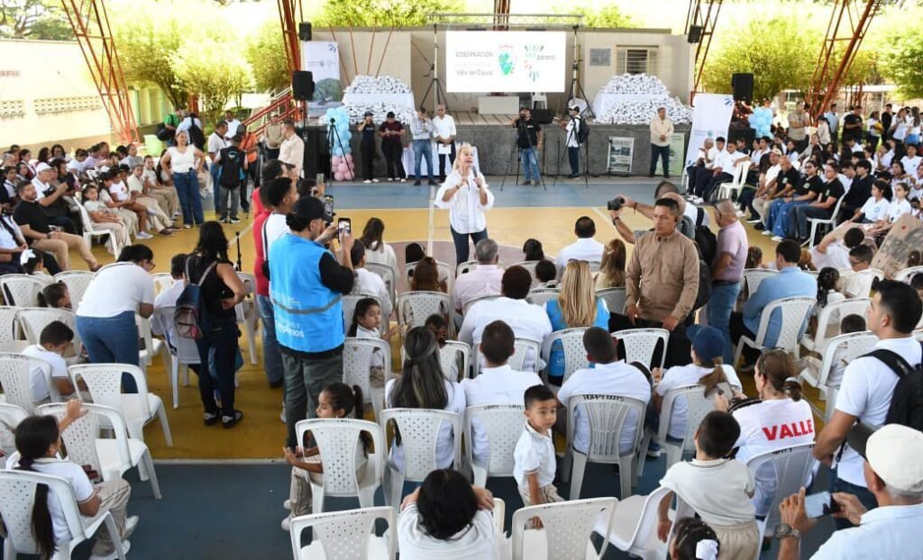 Cartago, Valle del Cauca, abril 12 de 2026. La gobernadora del Valle del Cauca, Dilian Francisca Toro, se reunió con estudiantes de nueve municipios del norte del departamento que recibieron zapatos nuevos, que les permitirán mejorar las condiciones para asistir a clase. Fueron 12.000 pares de zapatos, que beneficiarán a niños, niñas y jóvenes, en el propósito del Gobierno departamental de cerrar brechas y garantizar la permanencia educativa.