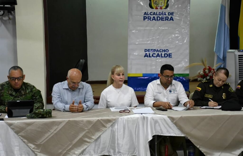 Pradera, Valle del Cauca, septiembre 10 de 2025. La implementación de plan desarme con puestos de control mixtos en entradas y salidas del municipio, fue decidido en el consejo de seguridad presidido esta mañana en Pradera por la gobernadora Dilian Francisca Toro con la fuerza pública, autoridades municipales y departamentales, tras el homicidio del secretario de Gobierno municipal, José Dorien Jiménez. La mandataria anunció una recompensa por información que permita capturar a los responsables de este crimen.