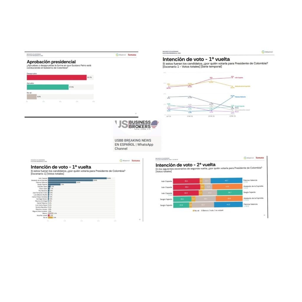 🔴 Según la encuesta de AtlasIntel y Semana realizada entre el 10 y el 12 de marzo de 2026, la carrera presidencial colombiana está liderada actualmente por Iván Cepeda, seguido por Abelardo de la Espriella y Paloma Valencia.